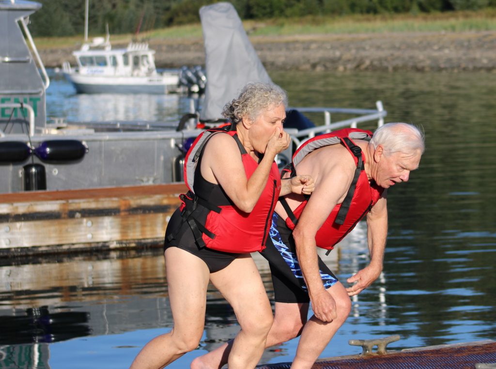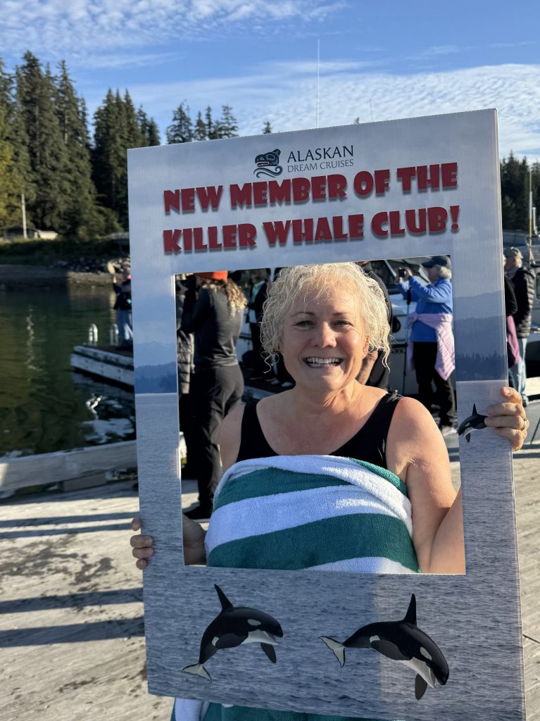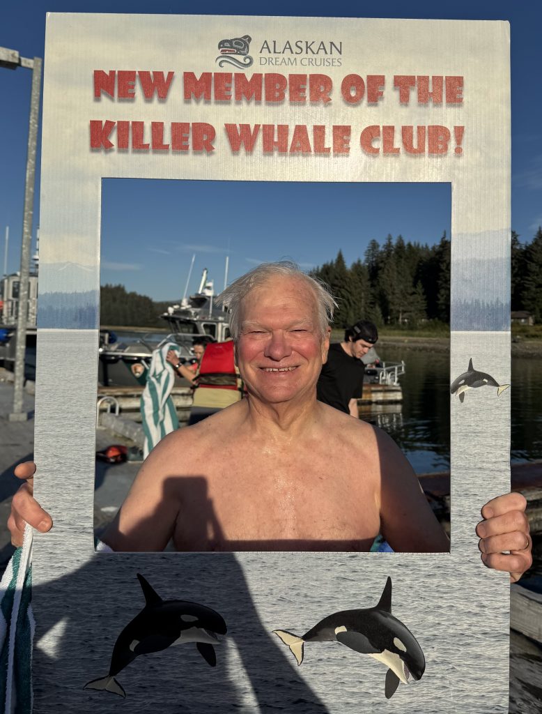 No trip to a national park would be complete without stopping at the visitor center for my national park passport stamp, so we exited the boat at Bartlett Cove, did a beautiful short hike through the temperate rain forest, where we saw some gorgeous mushrooms and fungi, and got ready for the polar plunge, a jump into COLD water (less than 50 degrees F), earning us certificates and lots of congratulations. Glacier Bay National Park is the 55th national park (out of 63) that we have visited together!