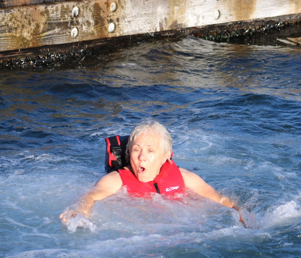 Lynn, it was colder than they told us for sure but not as awful as it might sound. We both swam pretty fast back to the ladders to get out of the water and into the sunshine!