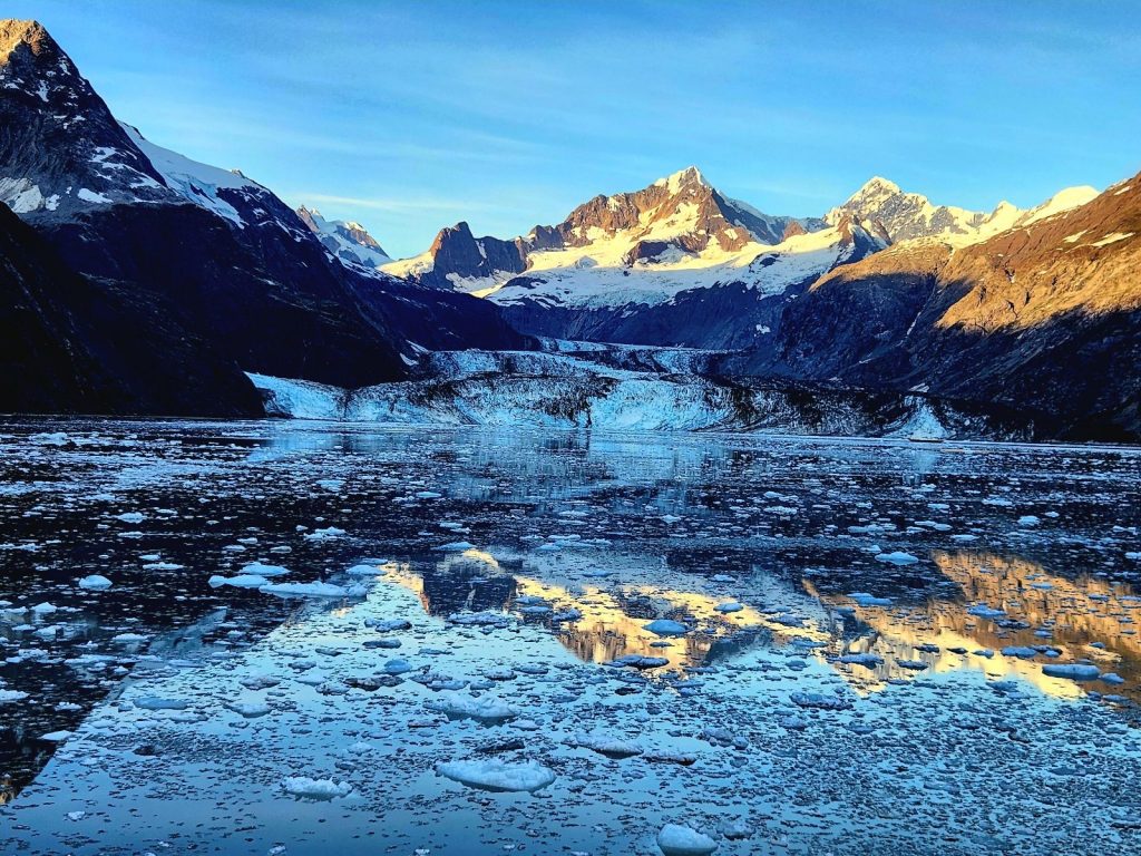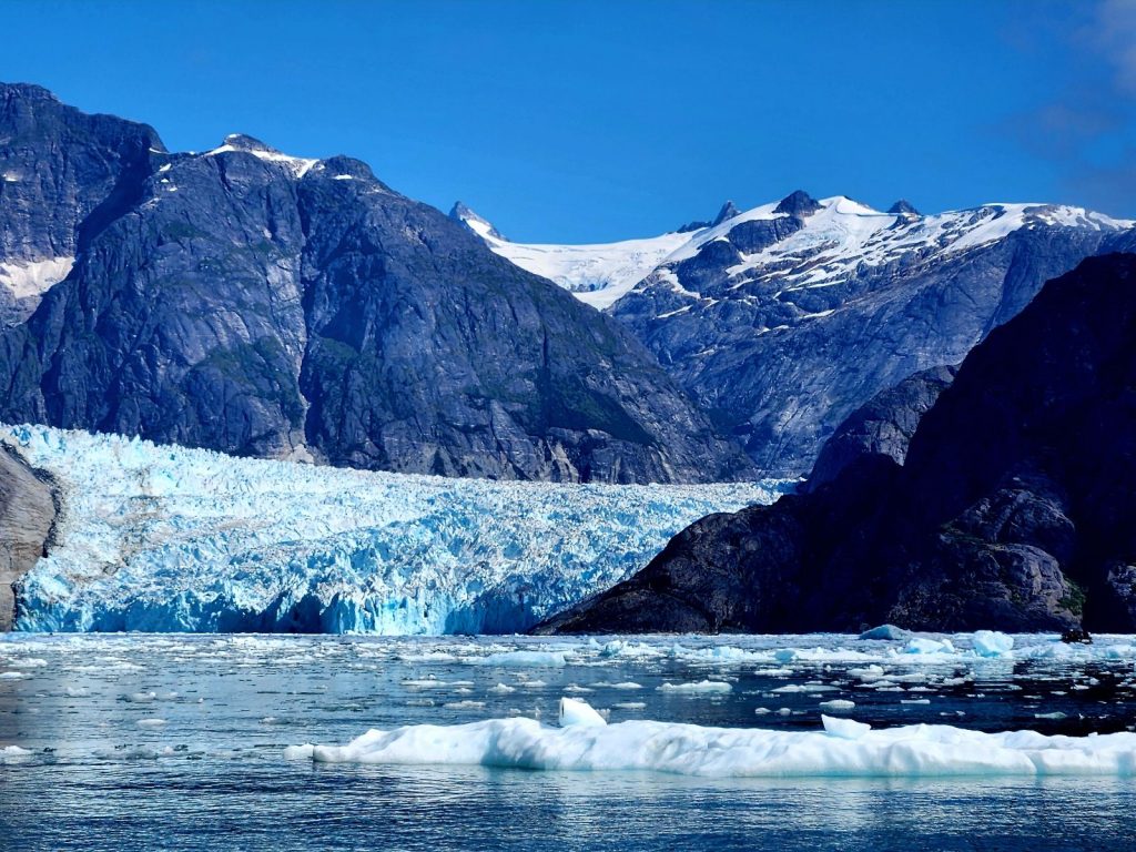 Once again, we traveled all night, this time into one of longest fjords of Glacier Bay National Park (Tarr Inlet), and we woke up to small floating icebergs and chilly temperatures. We visited Margerie Glacier (a tidewater glacier) and Grand Pacific Glacier (a terminal moraine that carved most of Glacier Bay), looking across the ice to British Columbia, Canada.