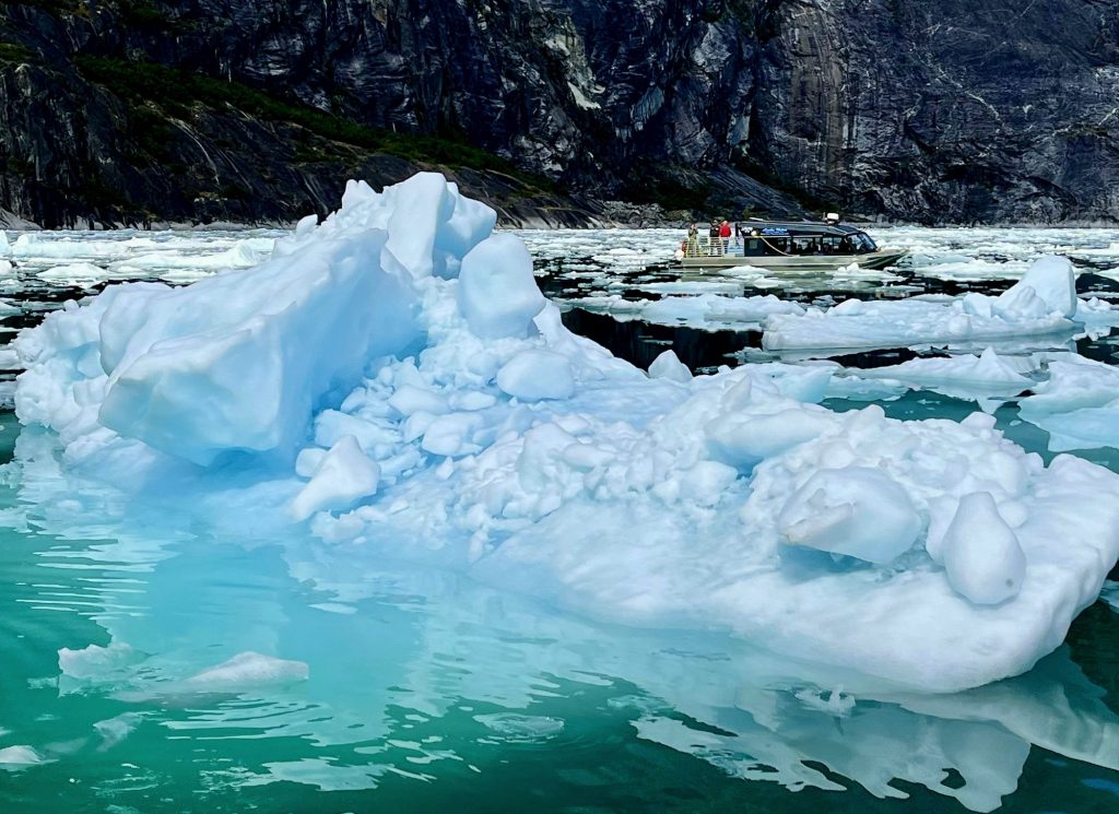 Heading south once again, we woke up in Endicott Arm, another long fjord with two beautiful glaciers at the end, North Dawes Glacier and Dawes Glacier. Harbor seals, icebergs, and waterfalls gave us lots of beautiful views, including Wedding Cake Falls. Our new vocabulary word for the day was bergy bit, a chunk of glacier ice floating in the sea, less than 15 feet in size. Our boat crew picked up some bergy bits and made cocktails out of some pieces, and gave us a contest to try and guess when a large chunk would completely melt (Hank came in second place!).