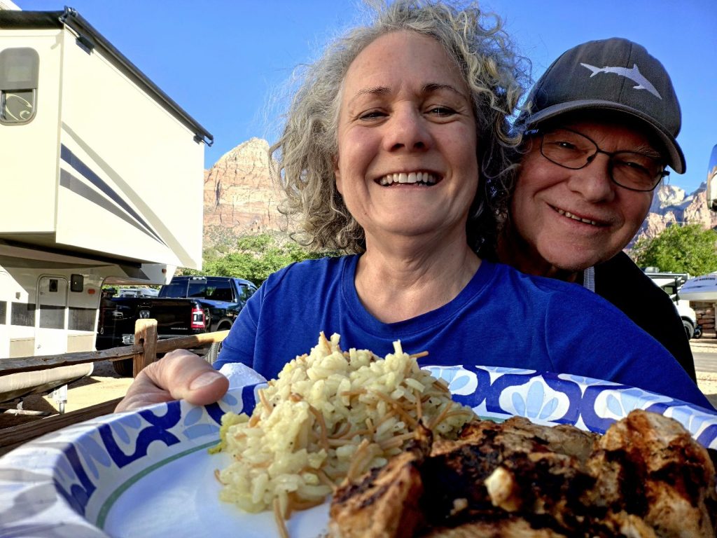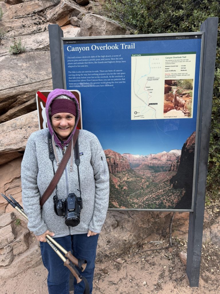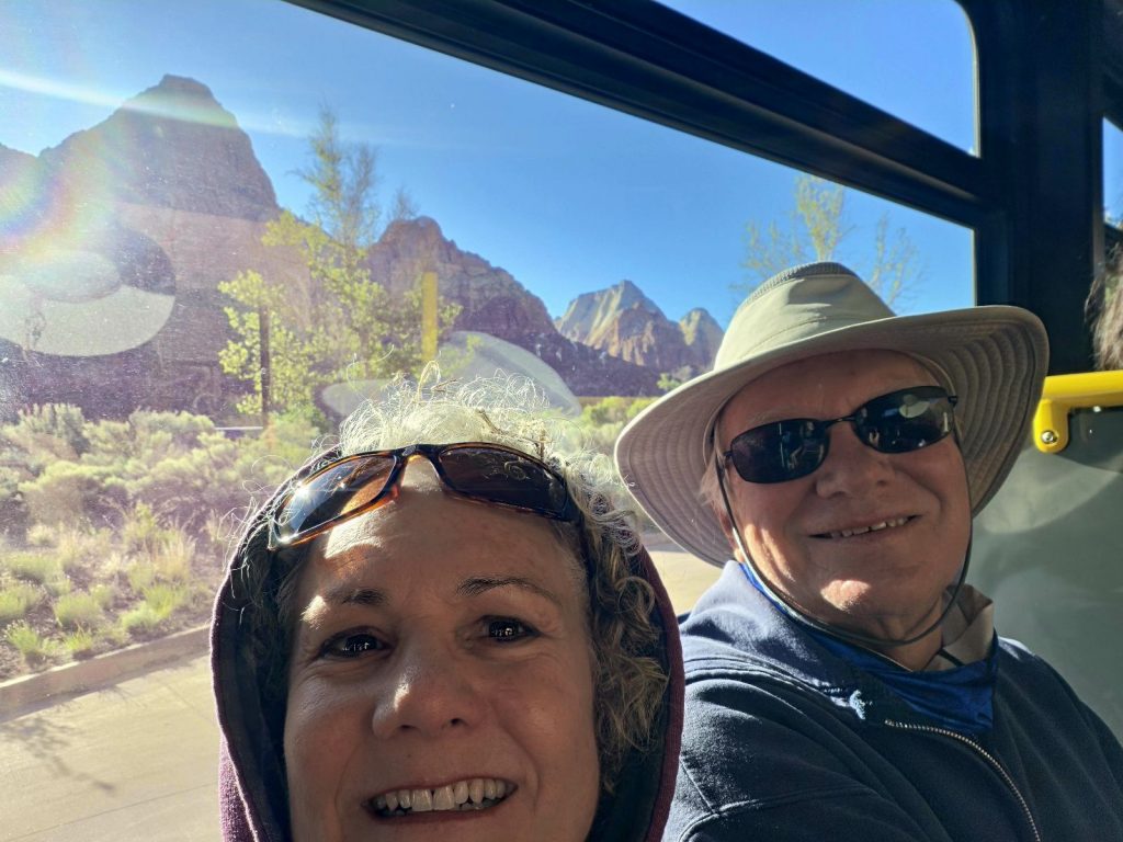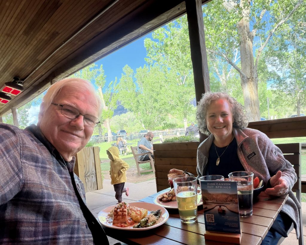 An afternoon trip to the Zion visitor center helped us plan our next day’s adventure, and we wrapped up the day with dinner at Wild Thyme Bistro, celebrating our 37th wedding anniversary (thanks, Val, for the excellent recommendation)!