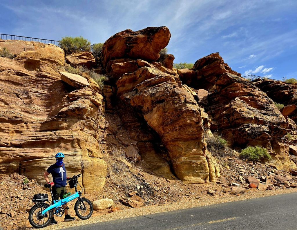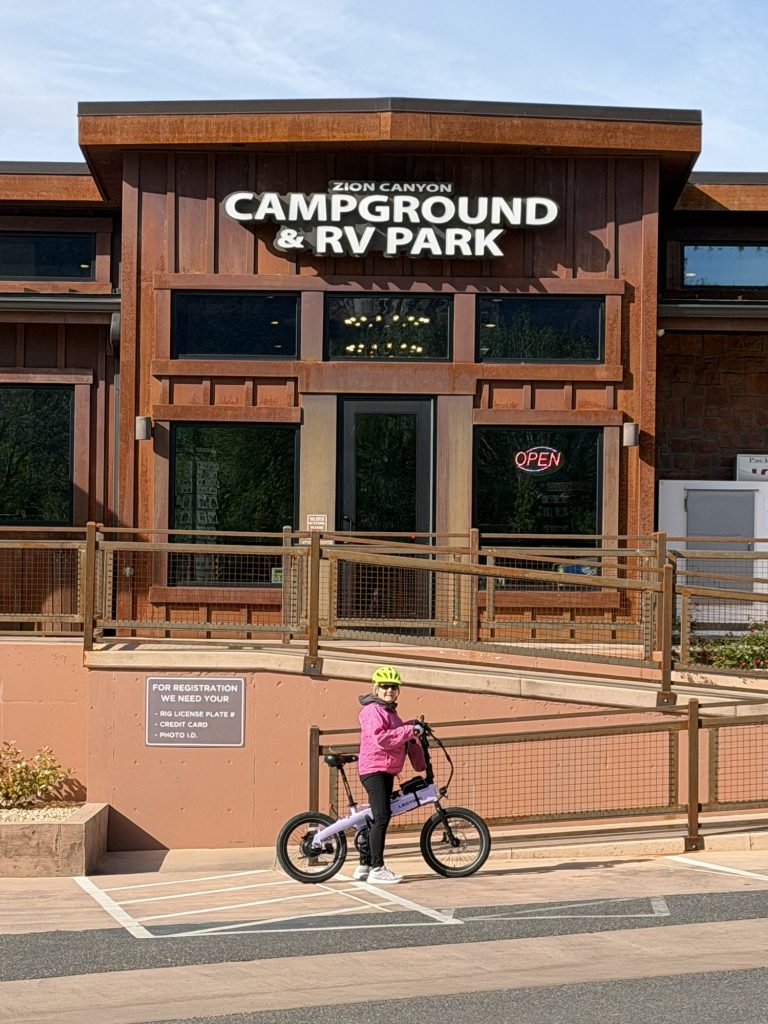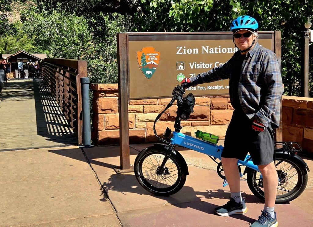 Next morning we headed out on our ebikes to ride through Zion Canyon, but after a couple of mishaps (skinned knee and low battery), we went back to the RV to get bandaged and recharged. Round Two: Our afternoon bike ride took us all the way to the end of the road at the Temple of Sinawava, enjoying more stunning red rock sights all along the way.