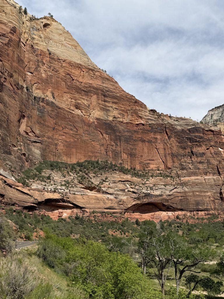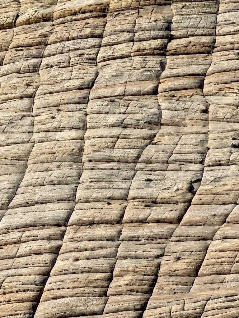 Our third morning in Zion got us back into the car to drive along the scenic Zion-Mt. Carmel Highway, through the 1.1-mile tunnel and past Checkerboard Mesa. We had hoped to hike the Canyon Overlook Trail, but there was no parking available.