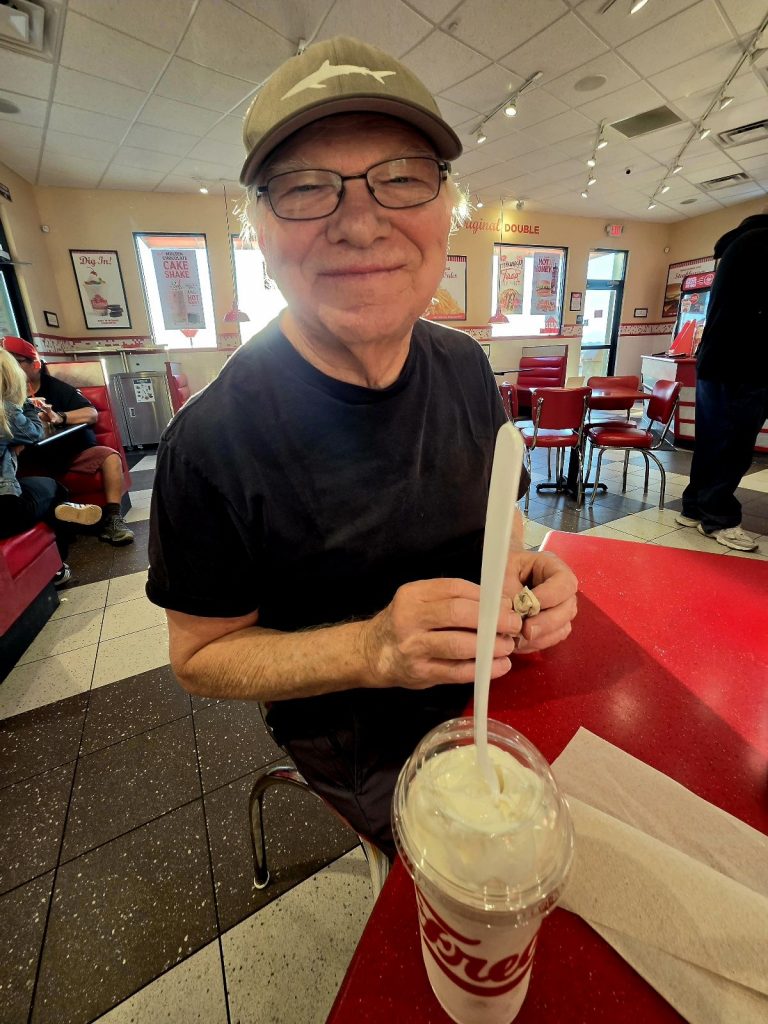 We headed home through Yermo/Barstow (near Calico Ghost Town), where Tierra and Luna (our 8-month-old kittens) got more comfortable with being outside in their harnesses. And we rounded out our trip with a new annual tradition when camping near Barstow, burgers and frozen custard at Freddy’s (thanks, Susie, for that introduction in Wichita 9 years ago!).
